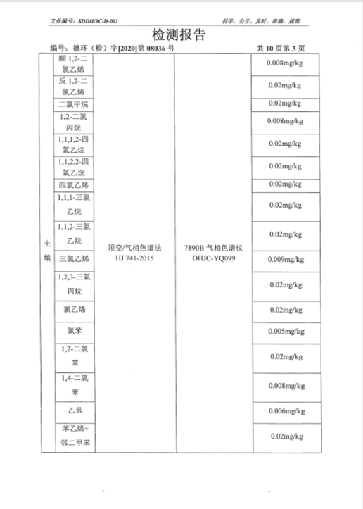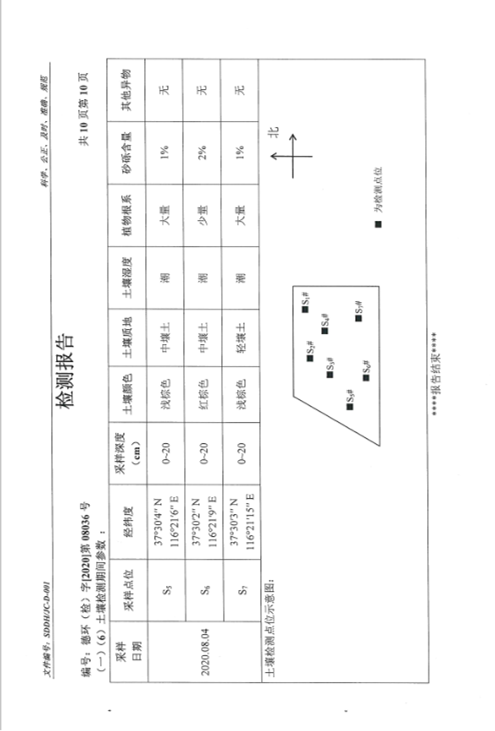 德州虹桥染料化工有限公司土壤检测报告(2020年三季度)